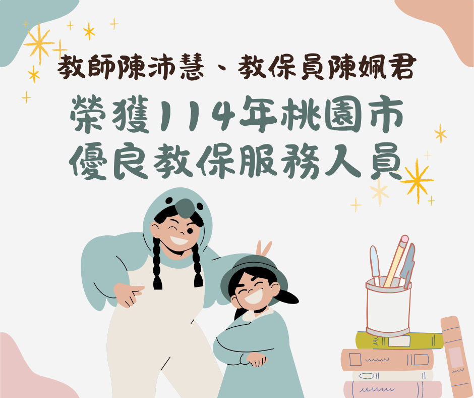 賀本園教師陳沛慧、教保員陳姵君榮獲114年桃園市優良教保服務人員